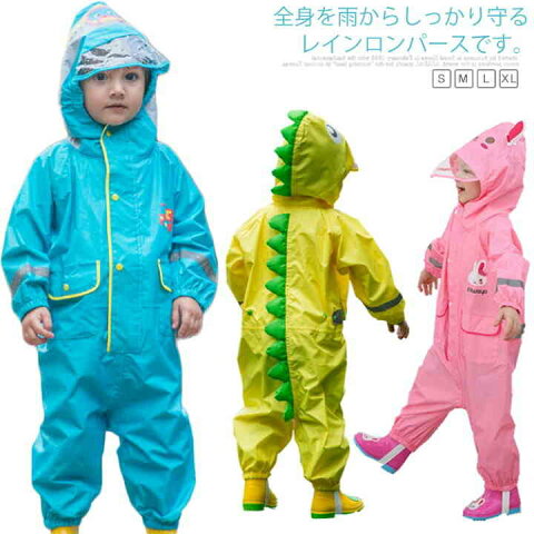 送料無料 レインロンパース レインコート キッズ ベビー 恐竜 子供用 男の子 女の子 レインカバーオール 上下全身 自転車 赤ちゃん ベビー服 乳児 幼児 雨具 ロンパース レイングッズ カッパ オールインワン レインスーツ カバーオール 雨具 ボディースーツ