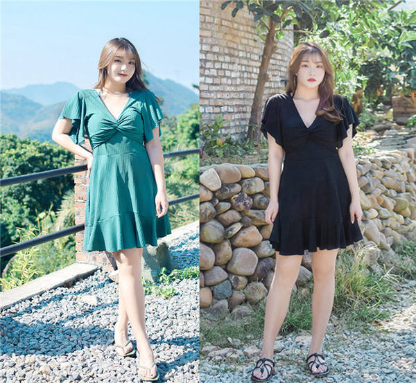 ワンピース水着 ぽっちゃり レディース 無地 リブ カシュクール 袖あり エンジェルスリーブ オープンバッグ ホルターストラップ 二の腕カバー 体型カバー 大きいサイズママ水着 オールインワンフレア フリル シンプル ぽっちゃり 2XL 3XL 4XL 5XL 6XL 20代 30代 40代 df539c0