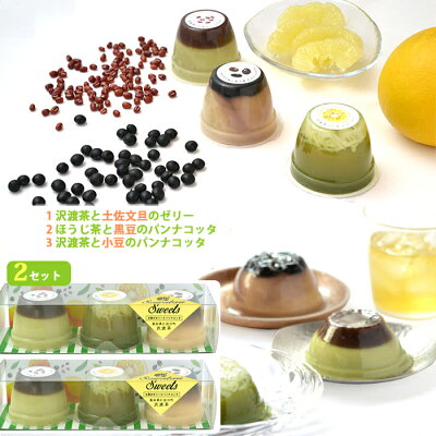 【26日9:59までポイント2倍★】沢渡茶のゼリー1種とパンナコッタ2種(沢渡茶と土佐文旦のゼリー、ほうじ茶と黒豆のパンナコッタ、沢渡茶と小豆のパンナコッタ)×2セット ビバ沢渡【お中元のし対応可】