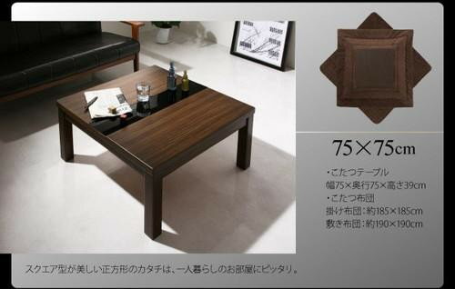 こたつ 本体 ローテーブル センターテーブル おしゃれ 安い 木製 リビングテーブル ちゃぶ台 ( 机 正方形 75×75cm) コンパクト ミニ 小さい 一人暮らし 約 高さ40 ガラス ウォールナット 高級 シンプル デザイナーズ モダン