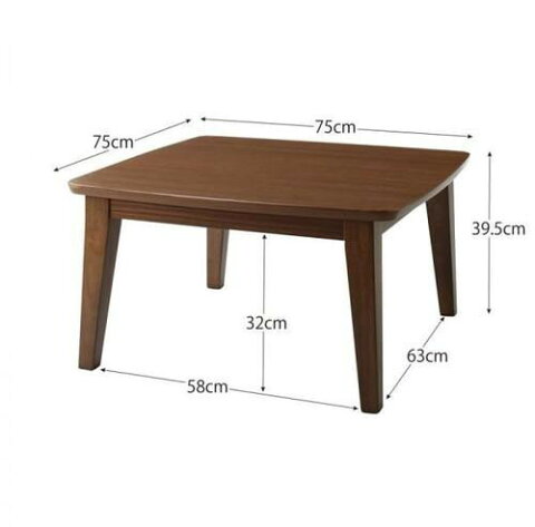 木目デザインこたつテーブル■正方形(75 75)【サイズ】幅75 奥行75 高さ39.5cm【製品重量】13kg【梱包サイズ/重量】95 80 11cm/14kg【材質】天板:メラミン樹脂化粧板 脚部:ラバーウッド【カラー】ブラウン【ヒーター】(正方形75、長方形105)300W石英管ヒーター・中間スイッチ(長方形120)510W石英管ヒーター・中間スイッチ【電源コード長さ】約3m【梱包数】1【生産国】マレーシア【備考】ヒーター部メーカー1年保証付き ※組立品※商品のサイズ・重量は概算です。